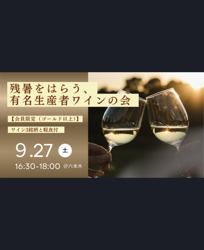 【投資会員様向けイベント開催】残暑をはらう、有名生産者ワインの会