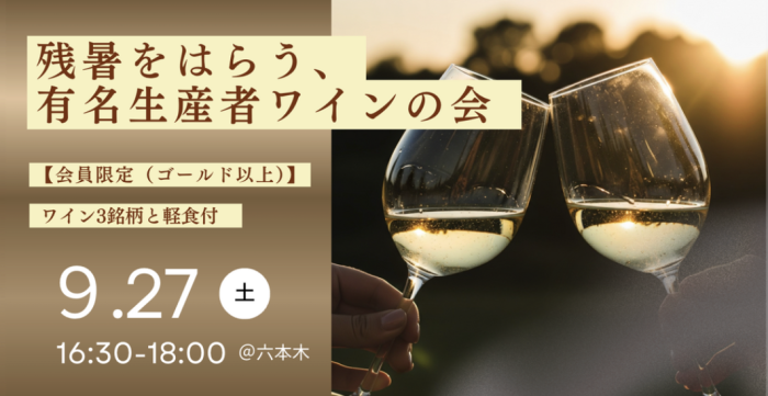 【投資会員様向けイベント開催】残暑をはらう、有名生産者ワインの会
